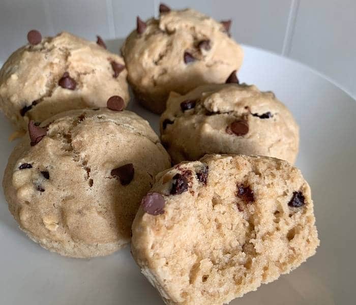 - Divide batter evenly between the muffin cavities. Sprinkle with chocolate chips if desired and bake for 21-22 minutes until fully done. Let cool for a few minutes before serving.